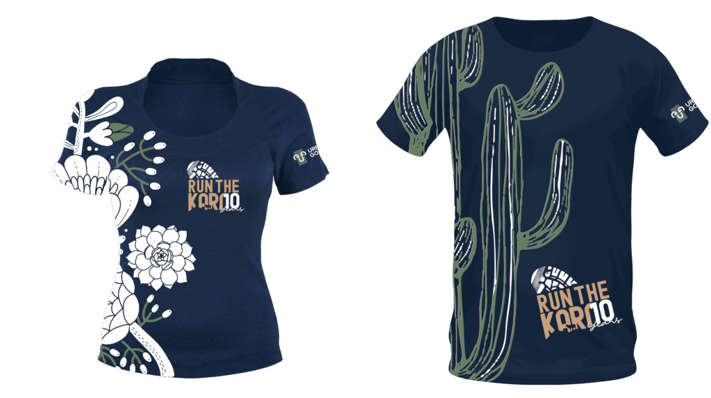 All Goodie Bags will be packed to the brim featuring custom-designed Run The Karoo “SOX”, a Kakiebos T-shirt, and a “KOPPI” enamel mug! Early bird entries can look forward to receiving a unique 10-year-special-edition merchandise item! Make sure to add the new exclusive custom designed Run the Karoo running wear at checkout!
