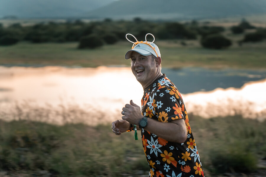 Challenge of the Day: The first 1.5 km ascent — sunset run to the summit of the koppie.